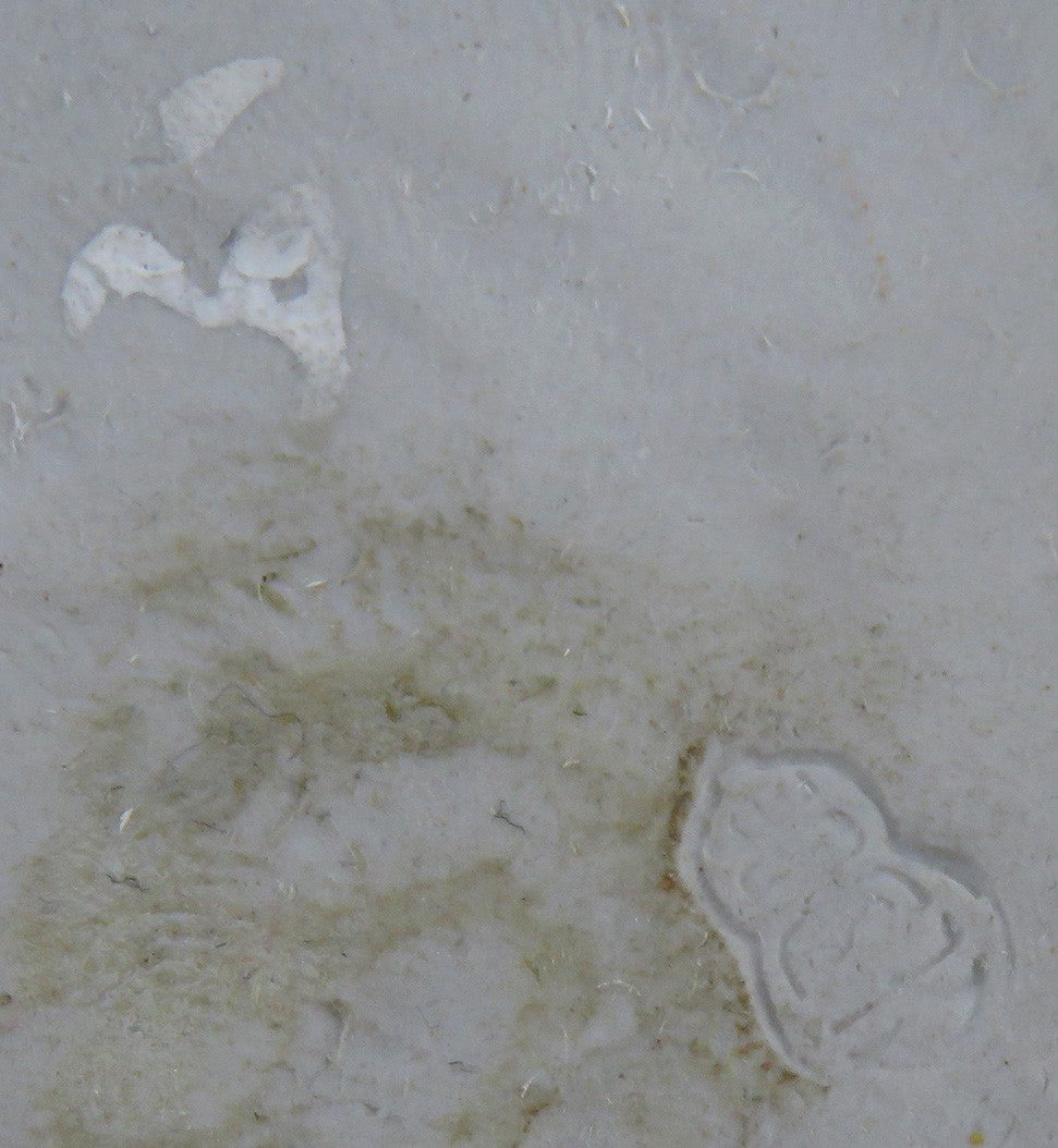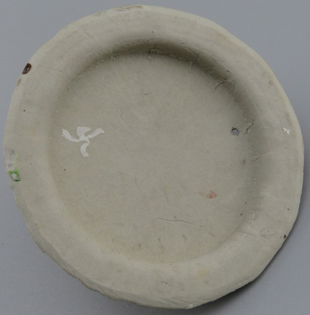 There is an impressed mark on the underside which we unfortunately do not recognize, and what may be a signature or other mark in white on the underside of the lid.