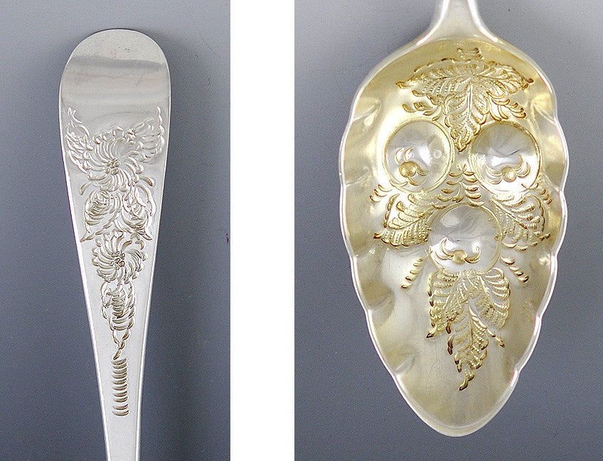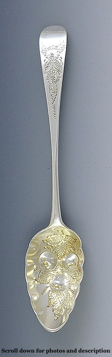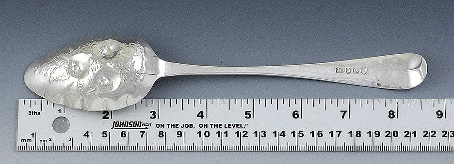 Antique 1809 Georgian English Sterling Silver Hand Chased Fruit Serving Spoon