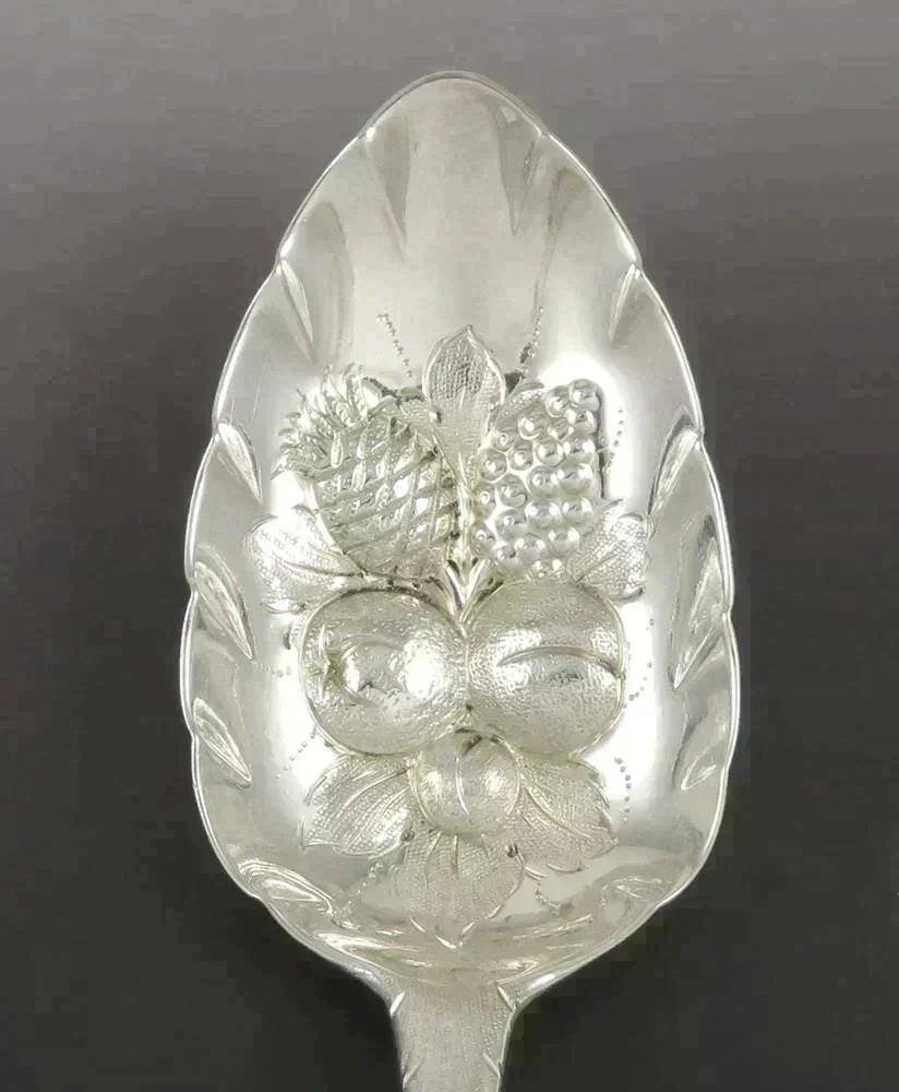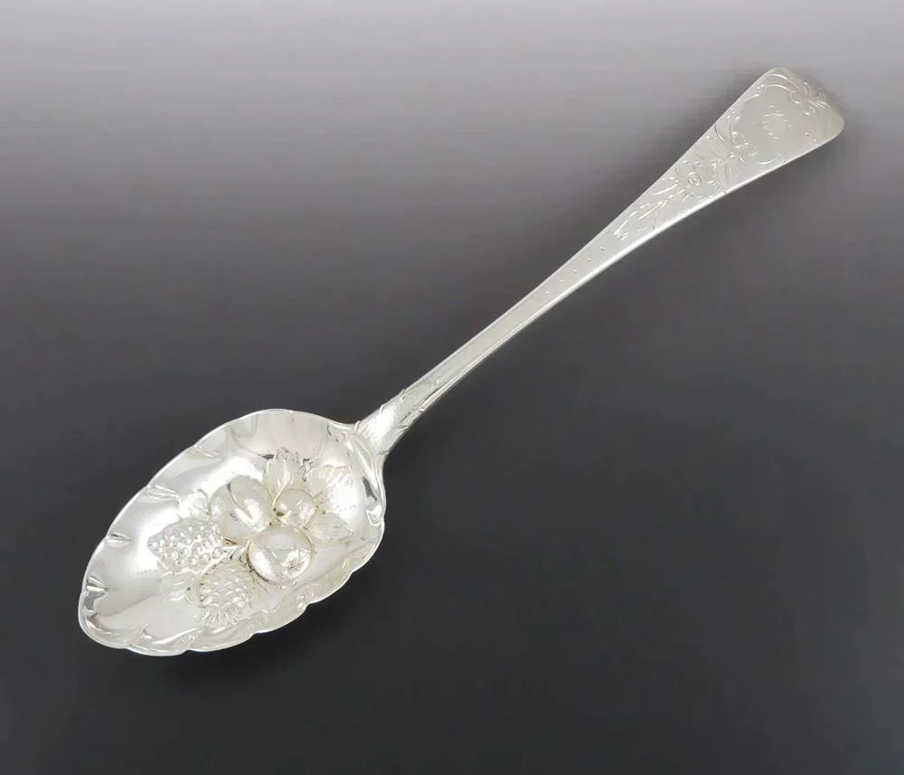 Antique 1816 English Georgian Sterling Silver Fruit Flower Serving Spoon M Mono