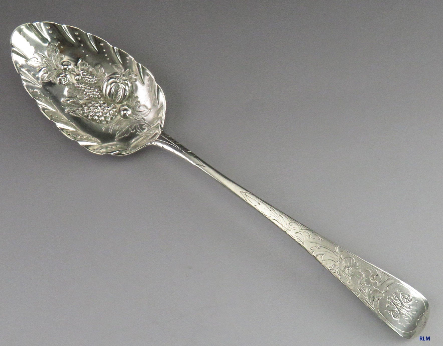 Antique 1830 English Sterling Silver Classical Fruit Serving Spoon