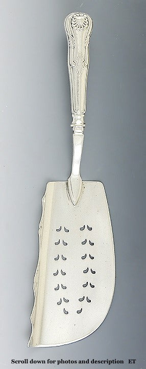 Antique 1840s American Coin Silver Kings Pattern Fish Slice/Server 10 3/4"