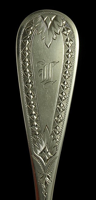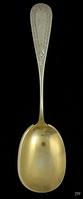 Antique 1850s American Coin Silver Gold Wash Bright Cut Berry Serving Spoon