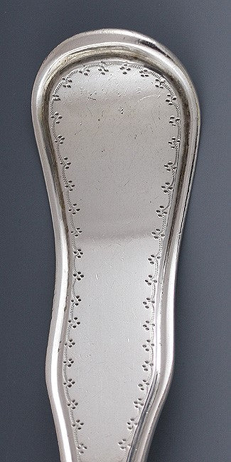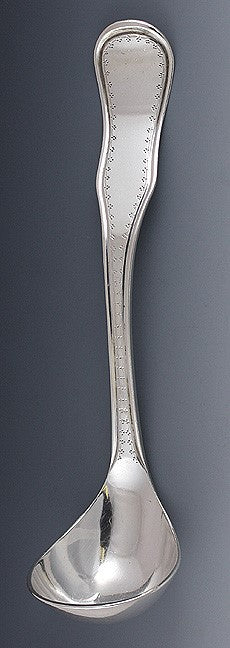 Presented is a fine, Dutch silver sauce or gravy ladle made in 1875. The handle has a nice eyelet patterned border. The piece has never been monogrammed.