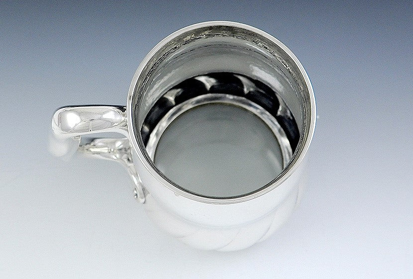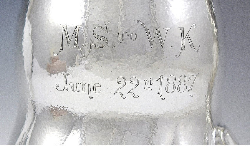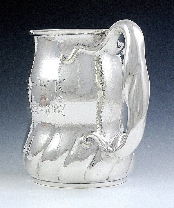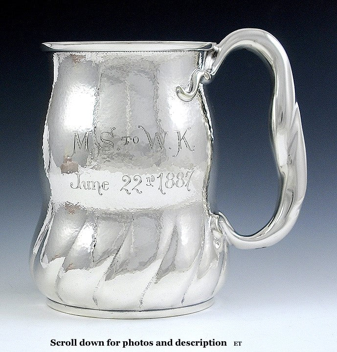 Antique 1887 Aesthetic Movement Hand Hammered Large Sterling Silver Cup Mug