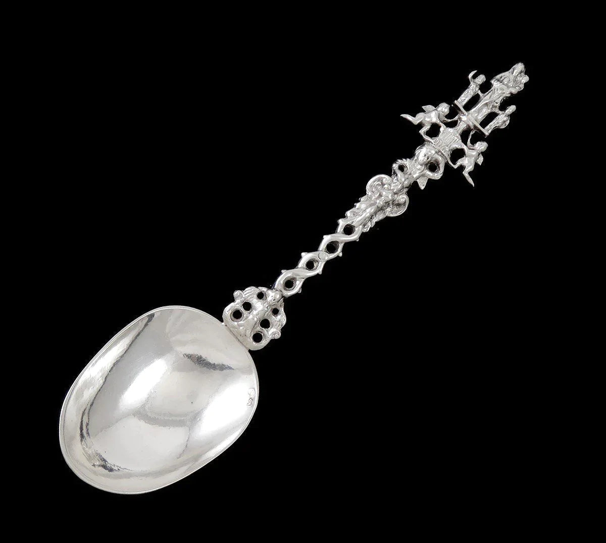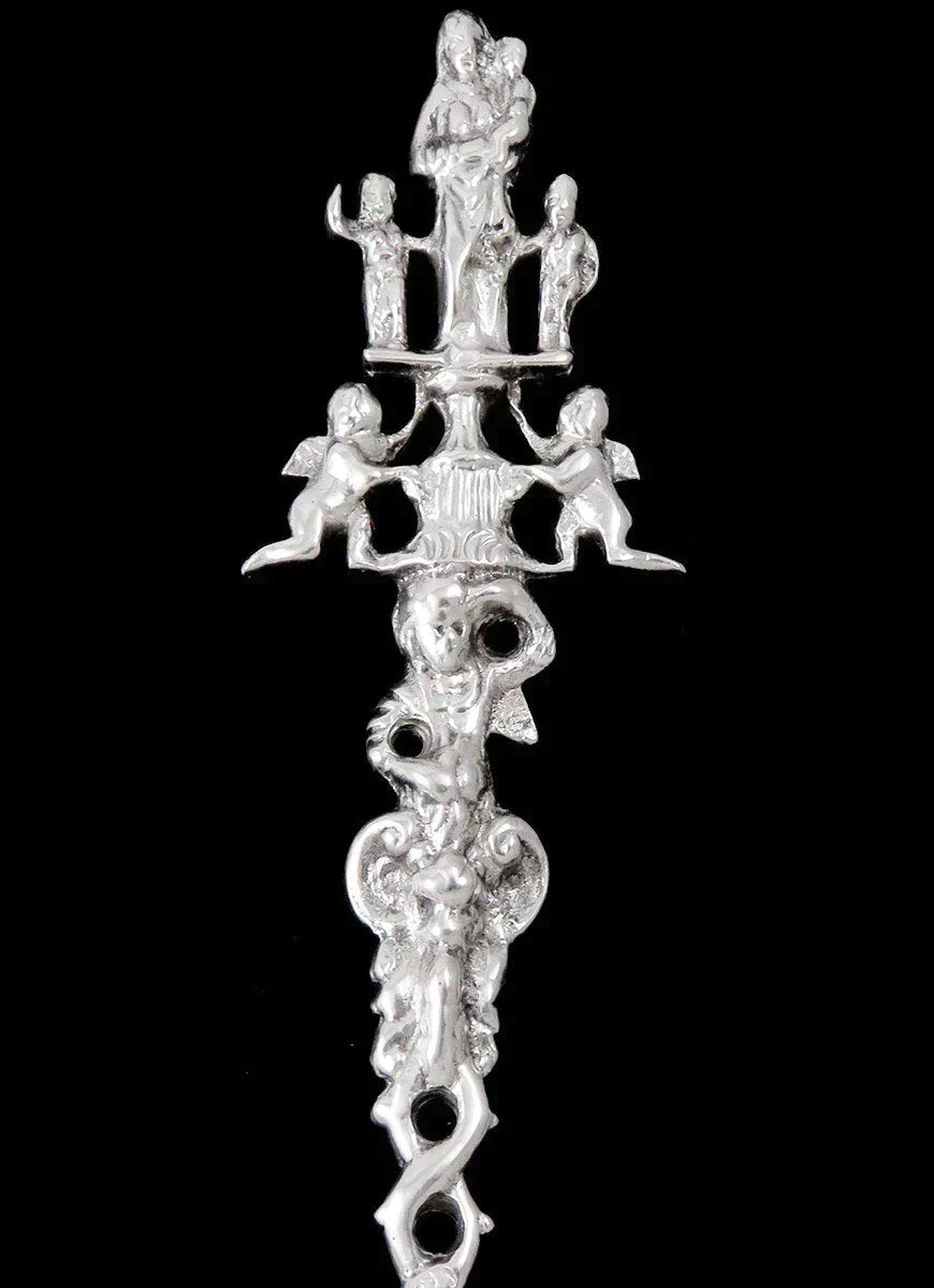 Antique 1890 Dutch Silver Mother Mary Jesus Angles 1720 Repro Serving Spoon