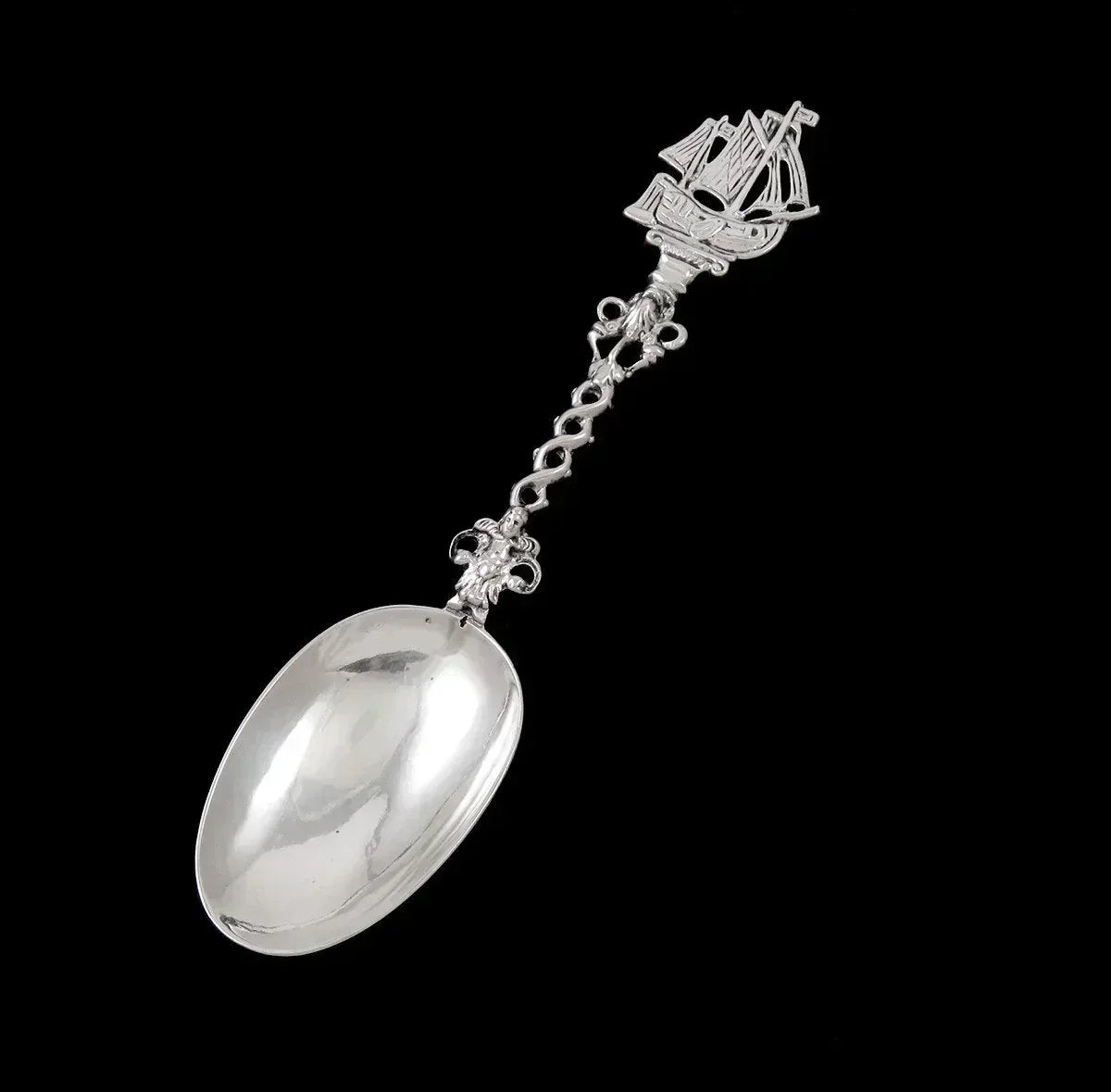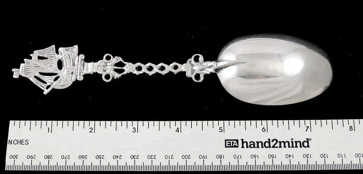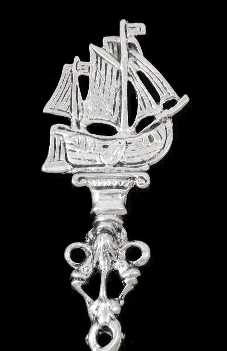 Antique 1890s German Hanau Silver Dutch Colonial War Ship Boat Serving Spoon