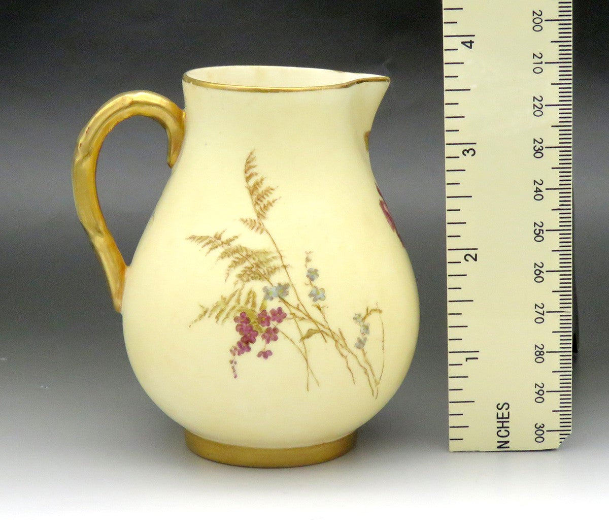 Antique 1891 English Royal Worcester Ivory Flower Porcelain Creamer Pitcher