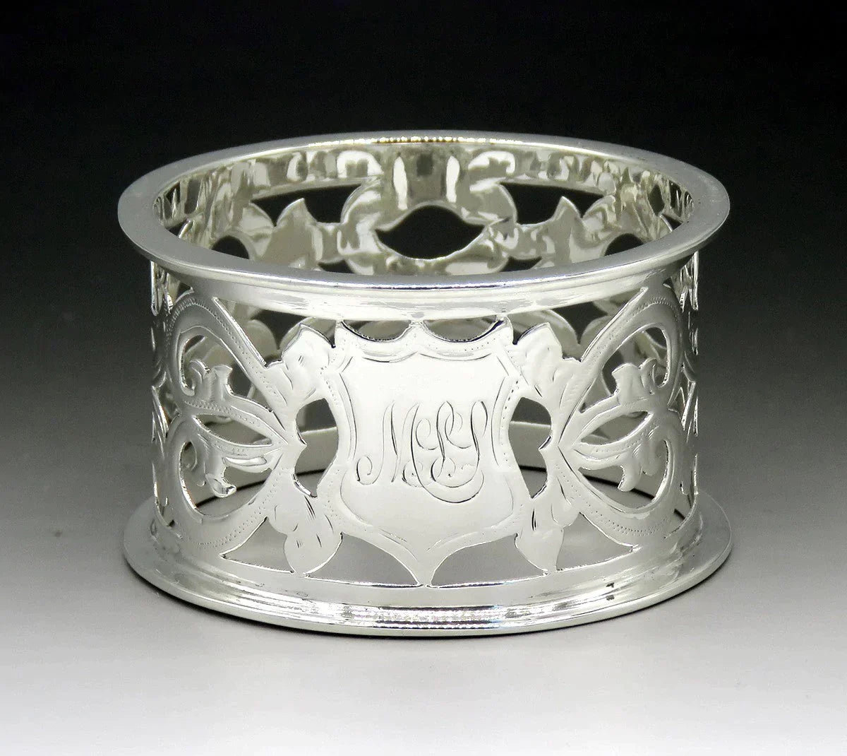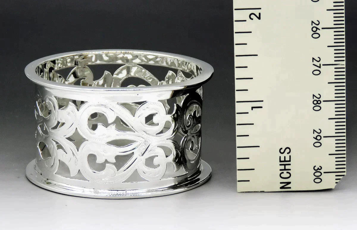 Antique 1909 English Sterling Silver Openwork Pierced Wide Napkin Ring