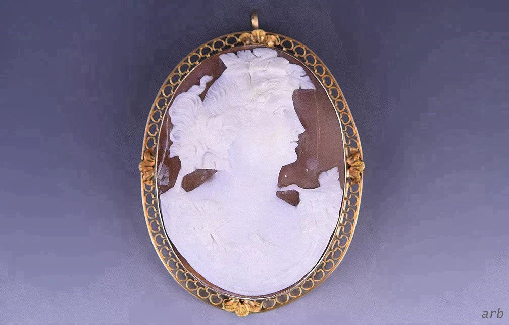 It features a truly exceptional carving on shell of a pretty woman's profile.