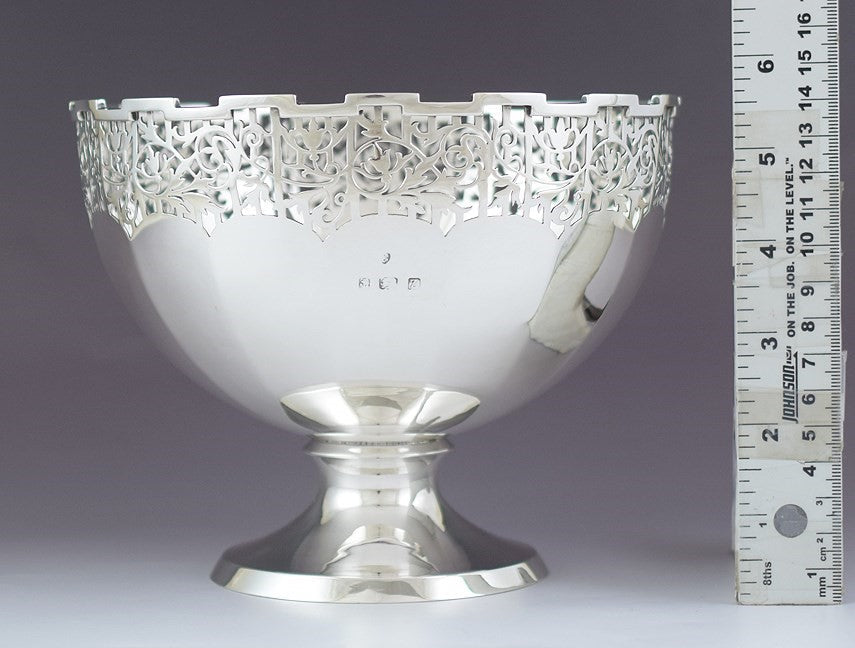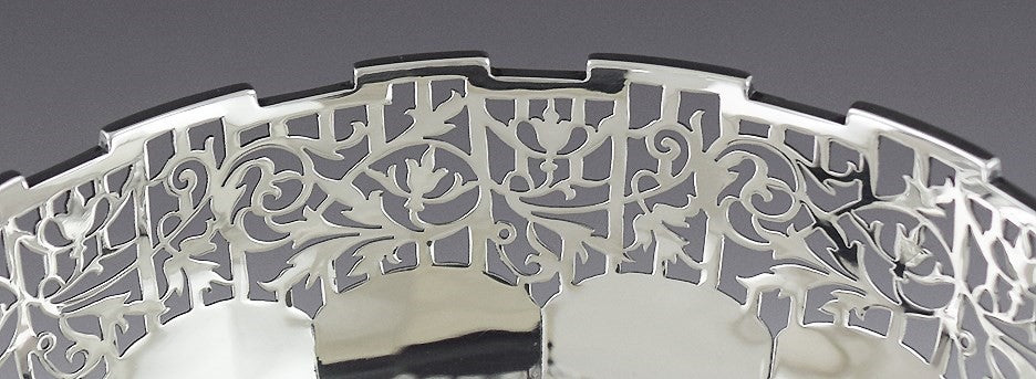 Antique 1924 English Sterling Silver Pierced Footed Bowl w/ Floral Design