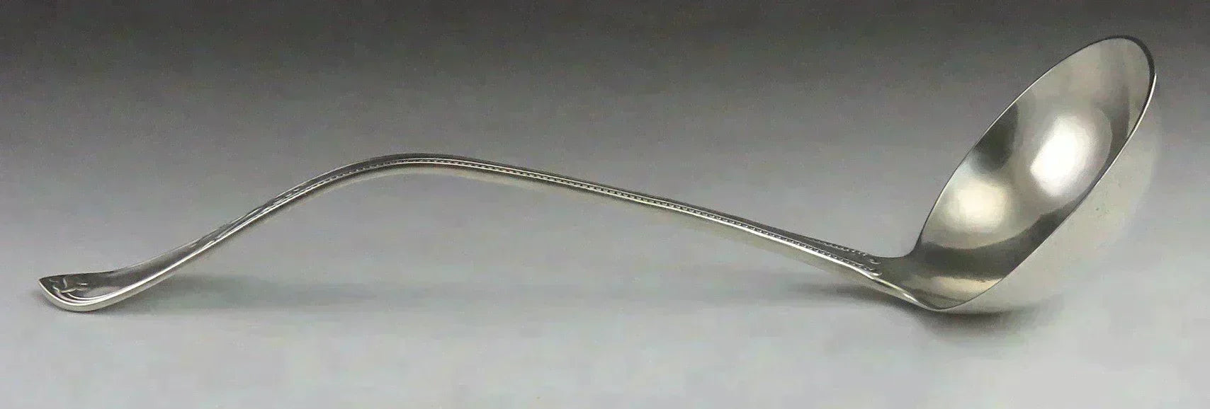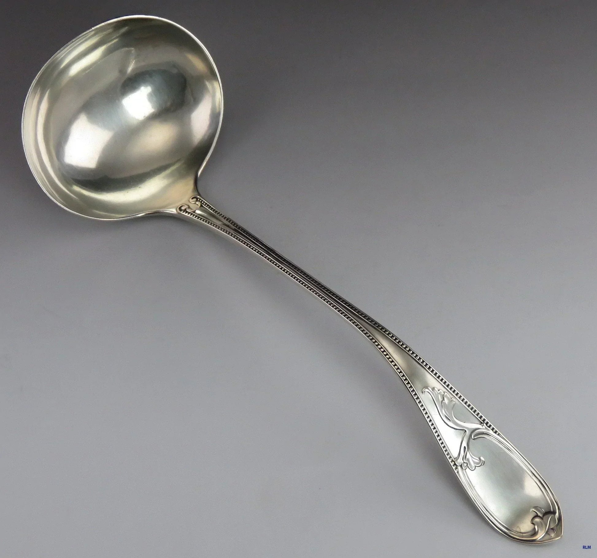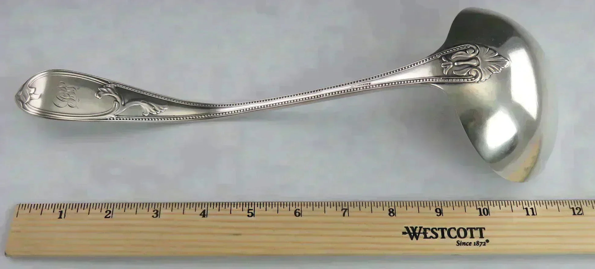 Antique 19th Century American Coin Silver Florentine Pattern Soup/Punch Ladle