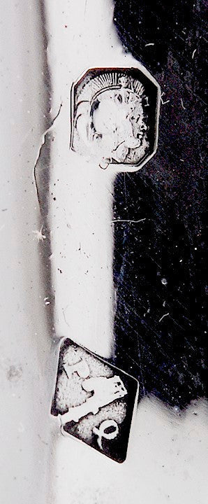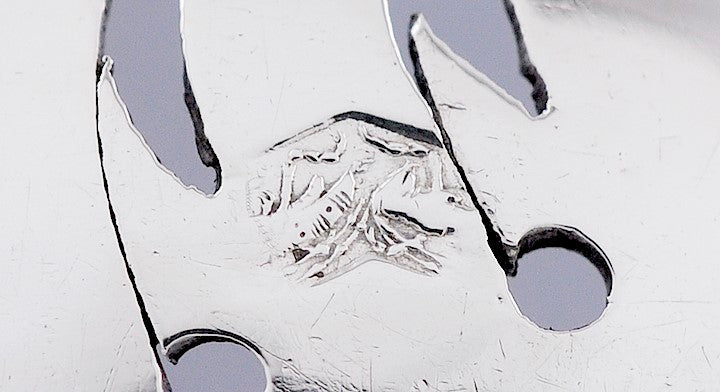 Each piece is hallmarked with the French Minerva head purity mark for 950 silver, as well as a maker's mark for Eugene Queille, son of and successor to Pierre Queille, and a French insect Bigorne mark.