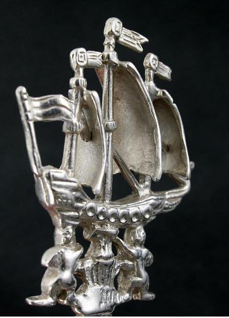 Antique 19th Century Neresheimer German Silver Figural Ship Boat Spoon