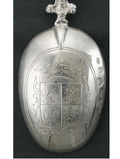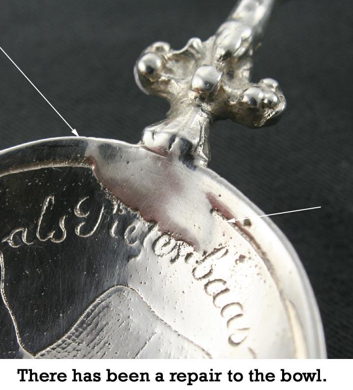 The spoon is hallmarked on the bowl with the marks of the Hanau silversmith, Ludwig Neresheimer and the import marks of the British import firm of Berthold Mueller.