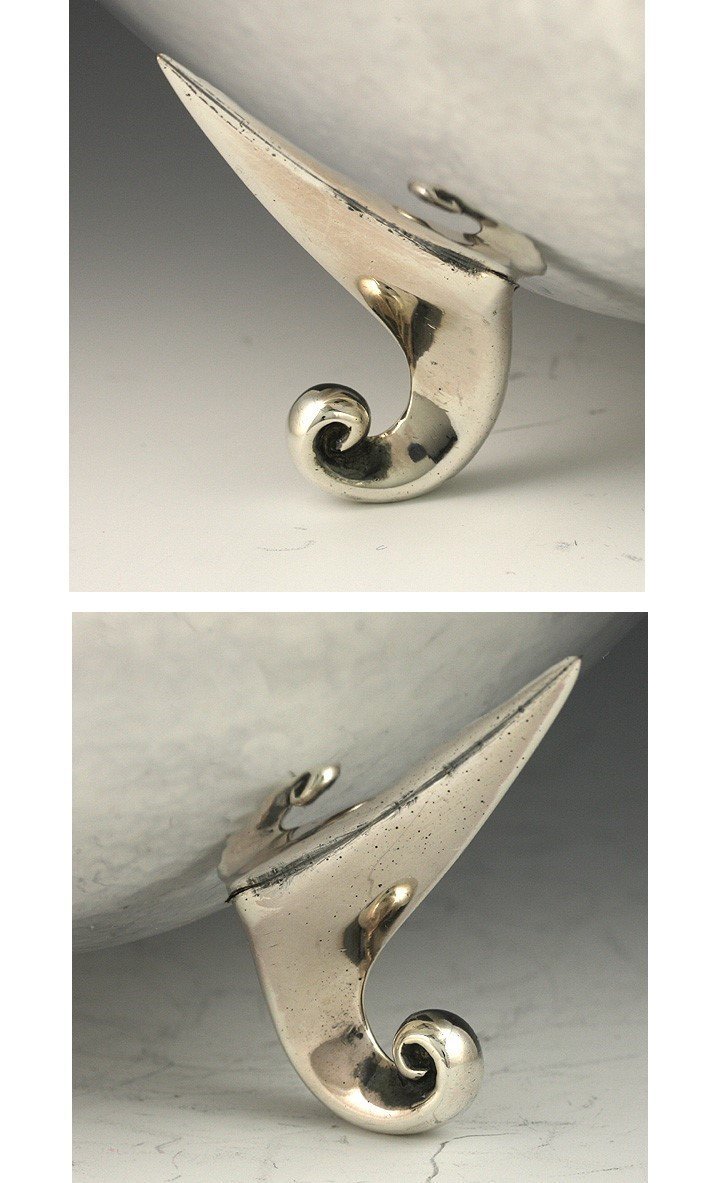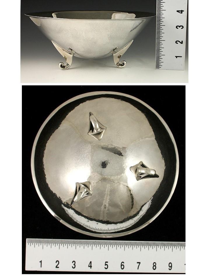 The bowl is marked on the underside with the letter F, Sterling, and the product number 1905. I believe this piece was made in Boston, but I cannot be positive. There was certainly a large Arts and Crafts movement in Boston at the turn of the 1900s.