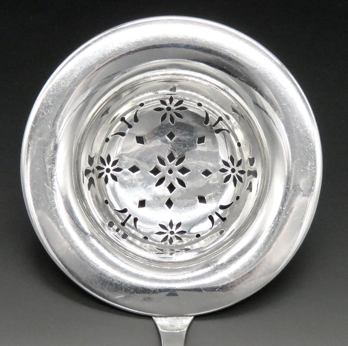 Antique American Sterling Silver Large Pierced Bowl Tea Leaf Strainer