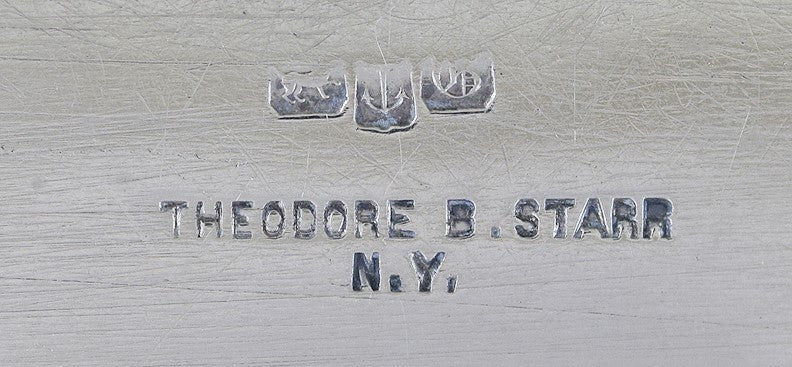 The underside of the bowl is stamped with the Gorham maker's mark as well as sterling, the date symbol for 1892, and the retail mark for Theodore B. Starr of New York.