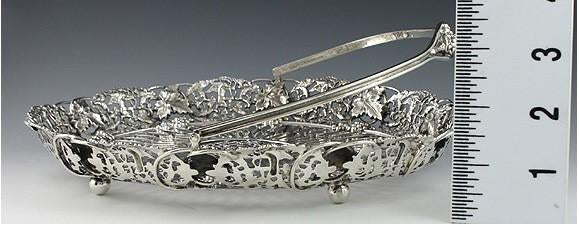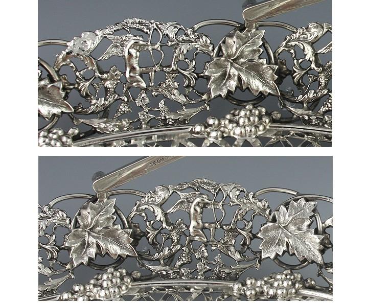 Antique Art Nouveau American Sterling Silver Cupid Grape Swing Handle Basket