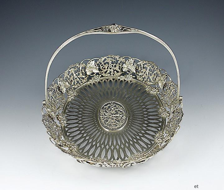 Antique Art Nouveau Starr Sterling Silver Cupid Grape Pierced Basket