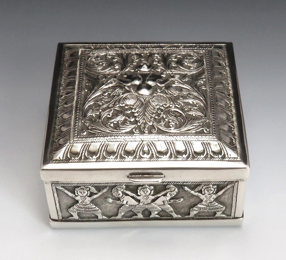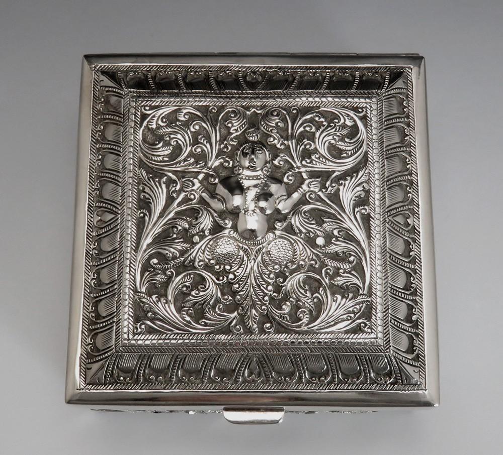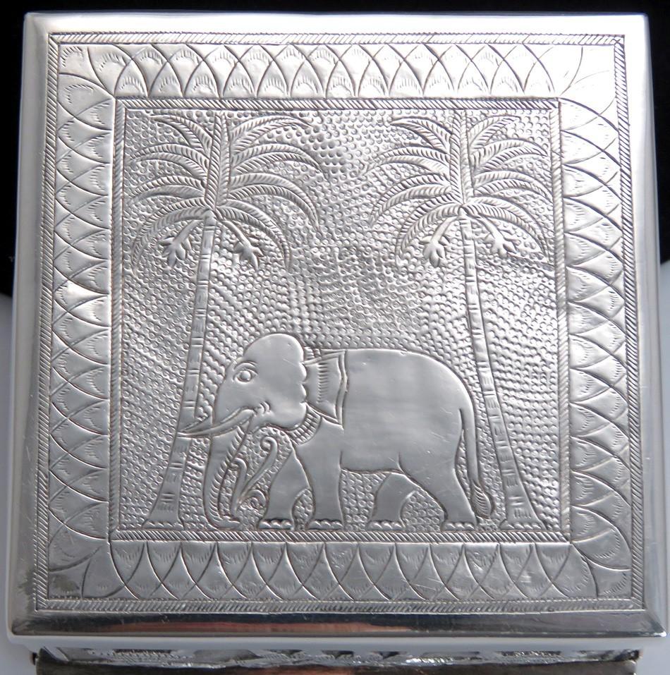 Antique Asian Silver Hand Chased Deity & Elephant Cigarette Box