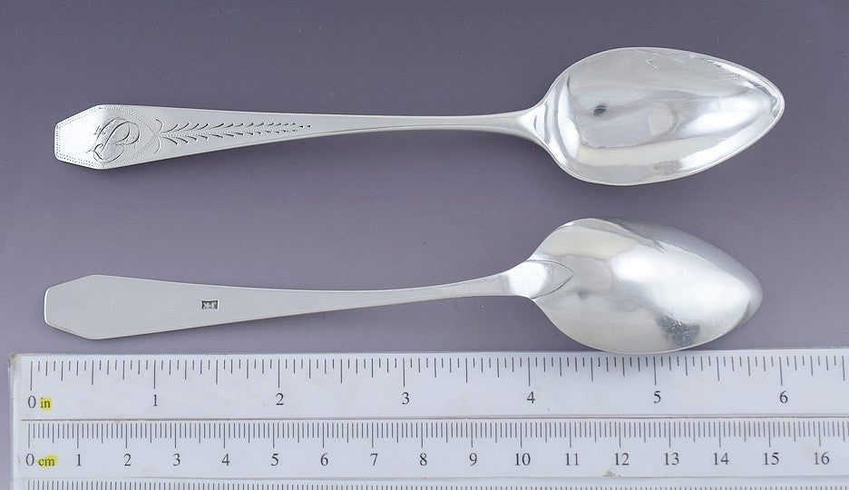 Antique c1810 American Coin Silver Coffin End Tea Coffee Spoons 5 7/8"