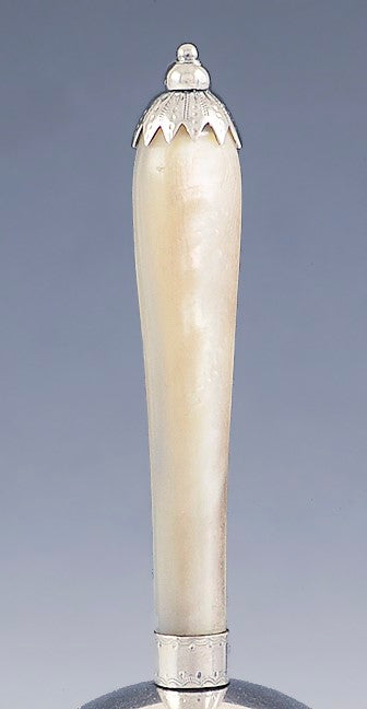 Antique c1820 Chinese Export Silver Mother of Pearl Shell Hand Bell