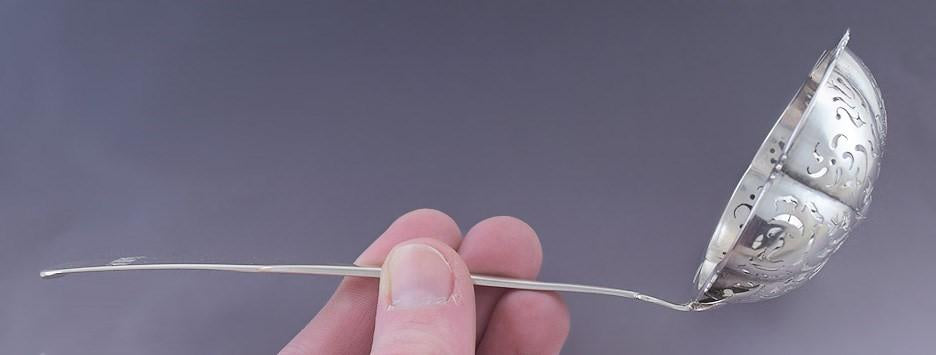 Antique 1850's 800S Silver Fiddle Pierced Berry Ladle Sugar Sifter Germany