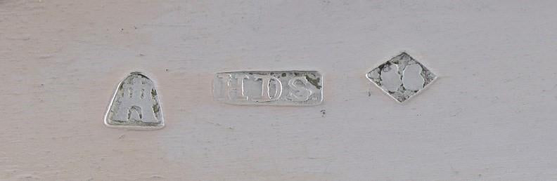 The ladle is stamped with a German hallmark for the city of Hamburg, a guildmaster mark of HDS, and an assay mark.