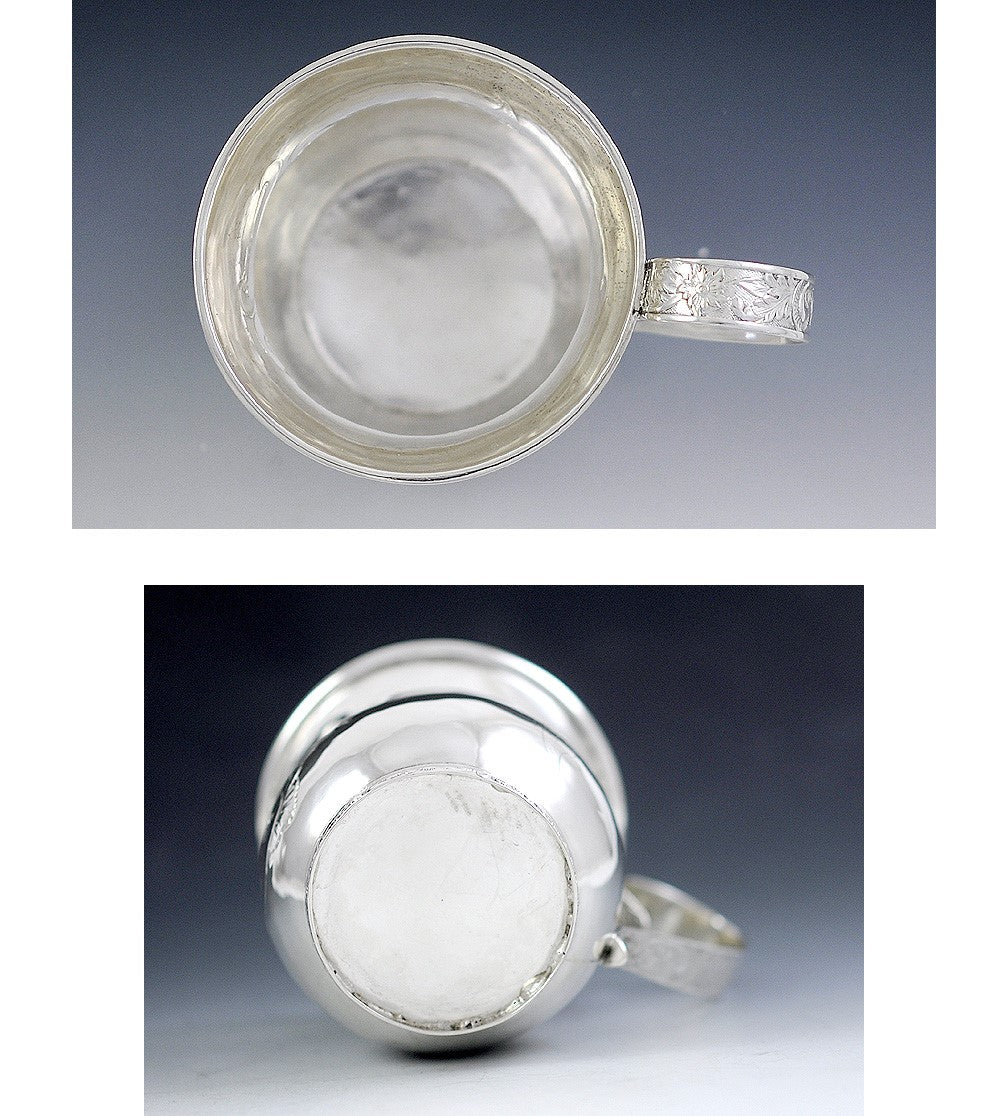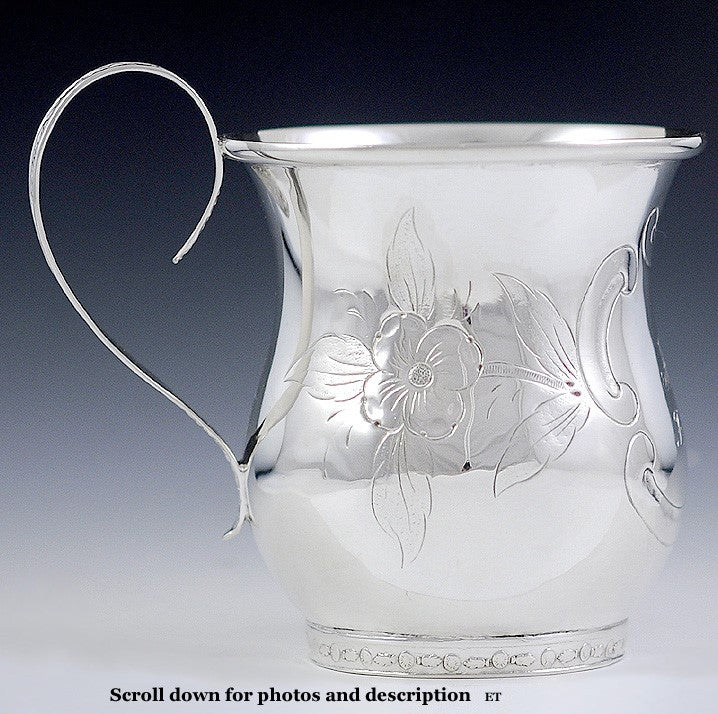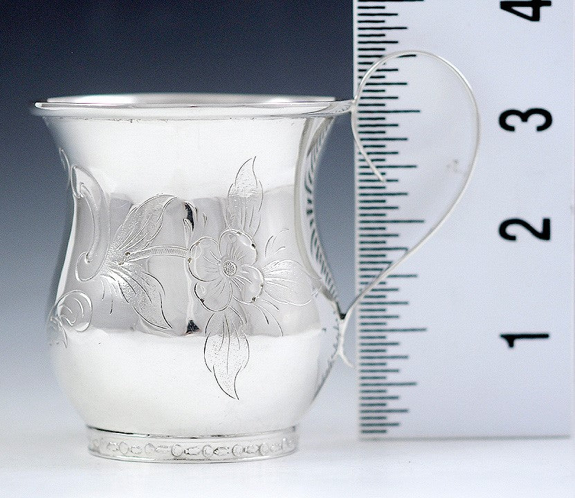 Antique c1840 American Coin Silver Engraved Flower Cup or Mug
