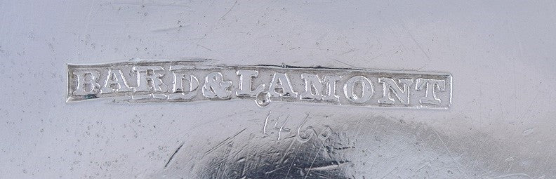 The underside of the cup is stamped with the maker's mark for Bard & Lamont, Philadelphia, PA silversmiths active in partnership from about 1841-1845. The cup is nitric acid tested and guaranteed coin (900) purity silver.