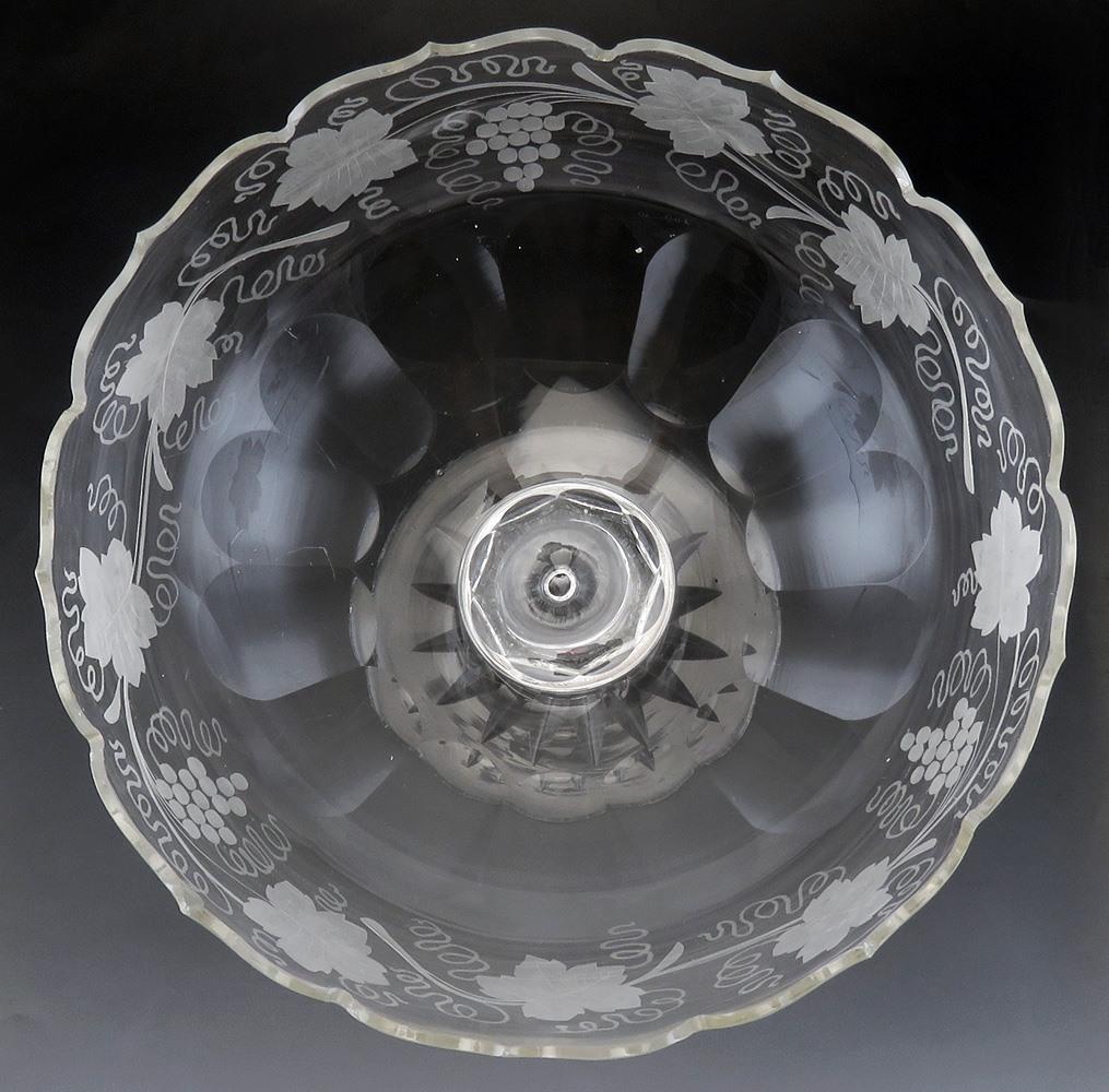 Antique c1850 Engraved Crystal Glass Centerpiece Pedestal Compote Bowl Grapes