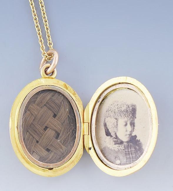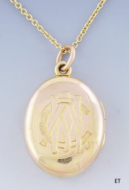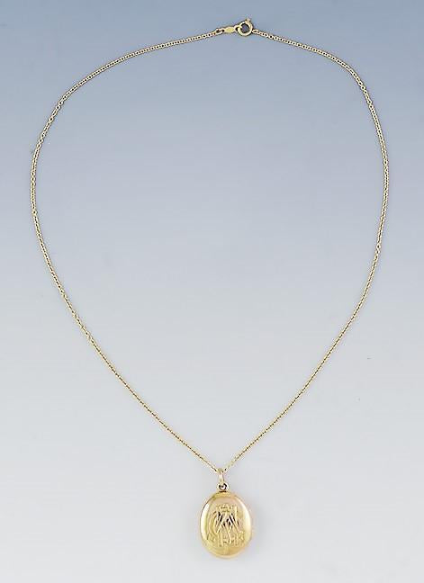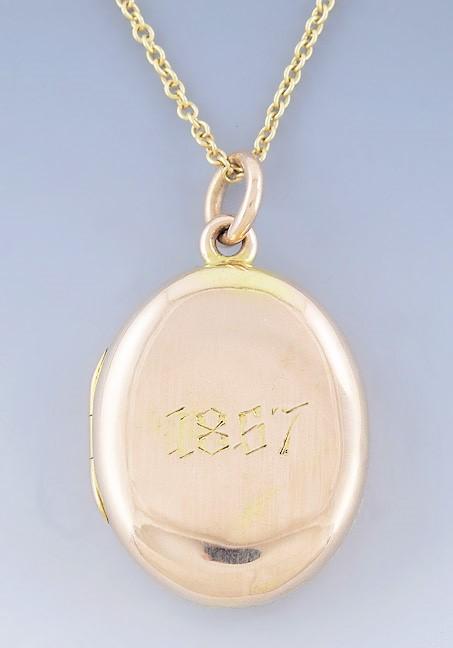 Antique c1857 Elegant Victorian 18k Gold Locket w/ 14k Gold Chain