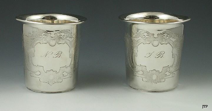 Antique c1867 Pair Austro-Hungarian Silver Engraved Beaker Cups