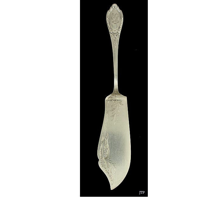 Antique c1890 Art Nouveau German Silver Engraved Fish Slice Server