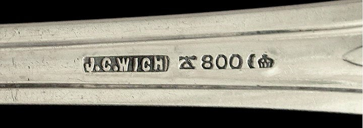 The fish server is hallmarked on the back of the stem with the maker's mark for J.C. Wich, 800, and the German crescent moon and crown mark. This piece is in great condition with only the most minor signs of wear and there are no cracks, no breaks, no monogram removals, no repairs, and no problems of any kind.