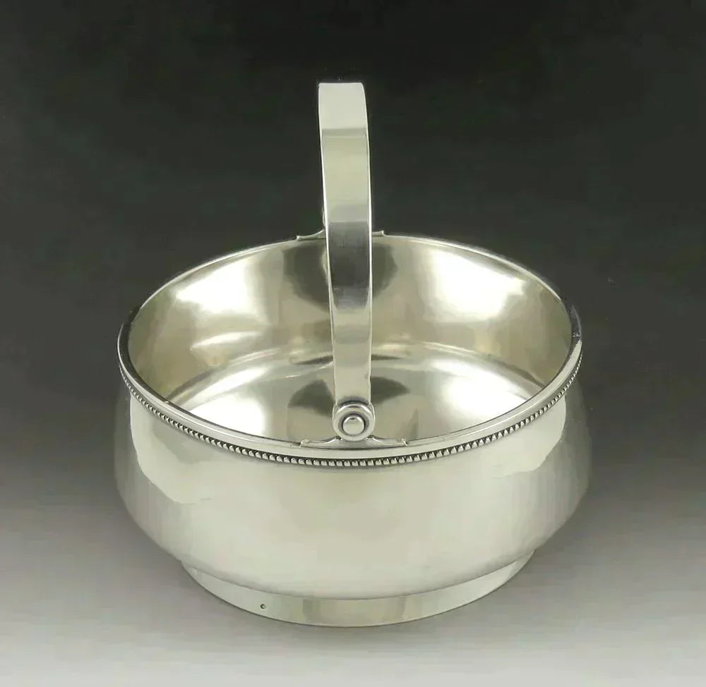 Antique c1890 Russian Silver Beaded Rim Swing Handle Basket Bowl/Dish NO MONO