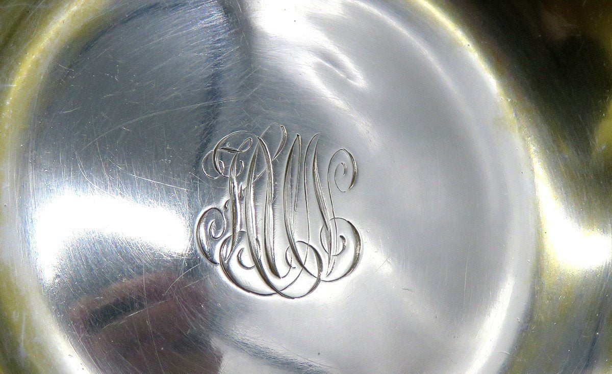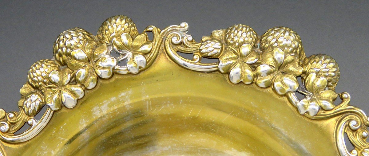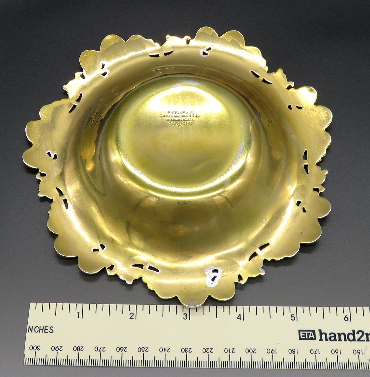 Antique c1895 Tiffany Co Clover Gold Wash Sterling Silver Bowl Dish 6 1/2"