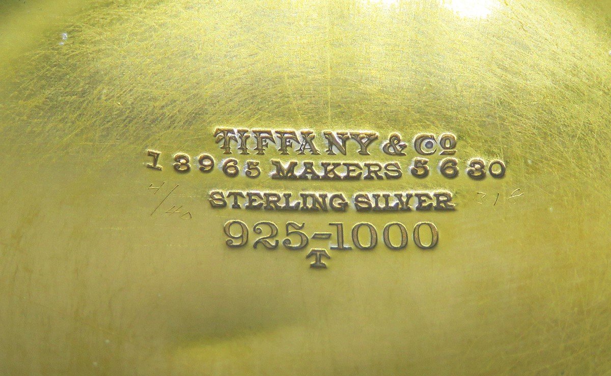 The underside bears the Tiffany & Company sterling silver maker's mark with the T initial used between 1892 and 1902, for the director Charles L. Tiffany.