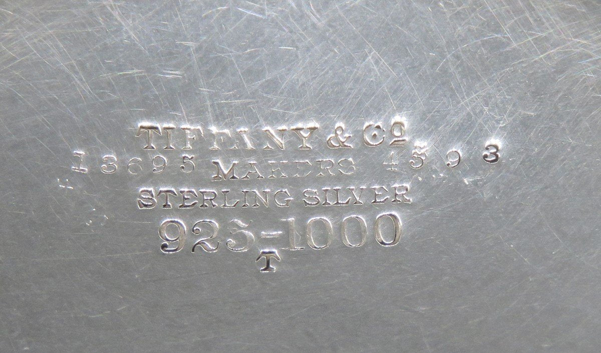The underside bears the Tiffany & Company sterling silver maker's mark with the T initial used between 1892 and 1902, for the director Charles L. Tiffany.
