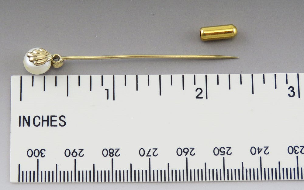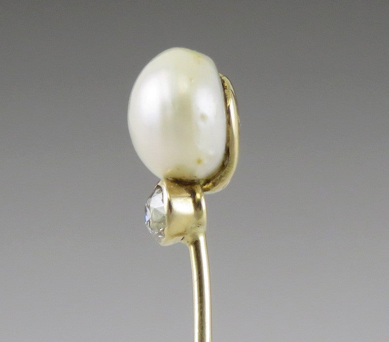 Antique c1900 14K Yellow Gold Natural Pearl Diamond Gemstone Stickpin