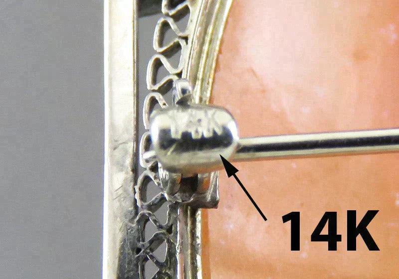 The clasp is marked 14K. The mounting has been tested and is guaranteed to be 14 karat gold purity.