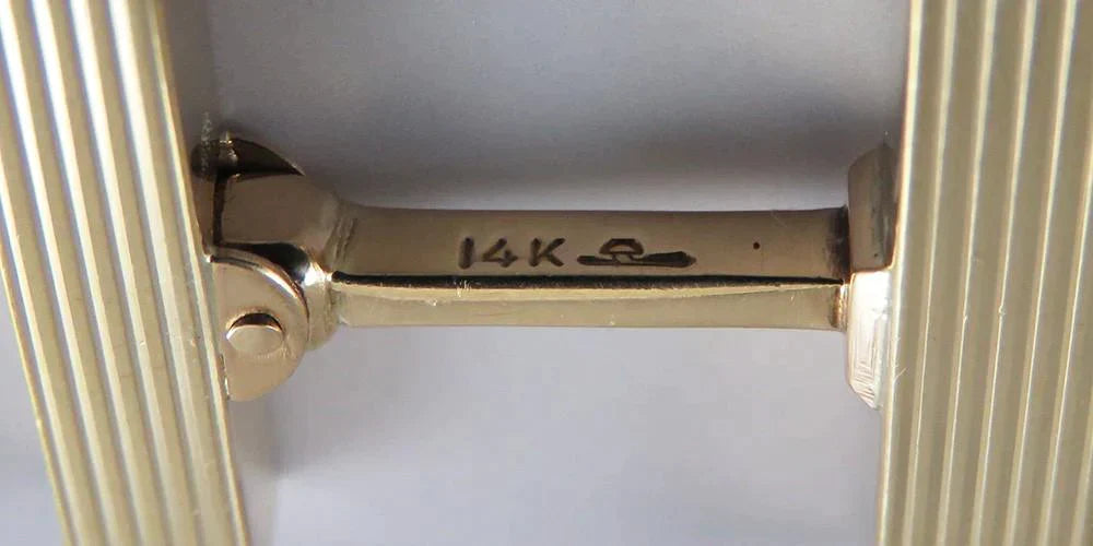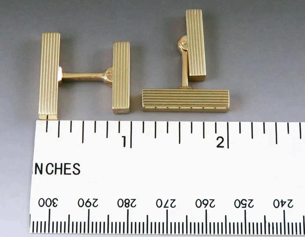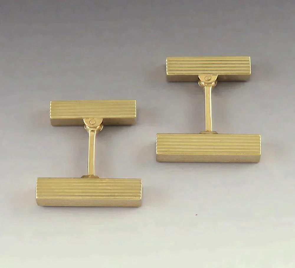 Antique c1910 Art Deco Tiffany & Co 14K Gold Ribbed Rectangular Bar Cufflinks