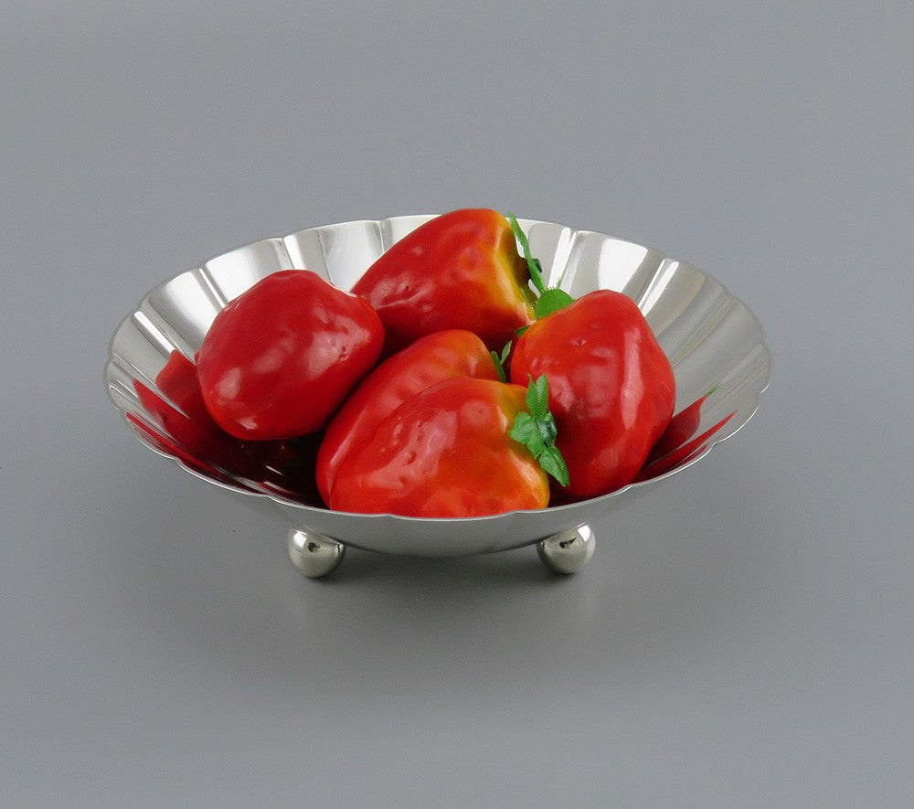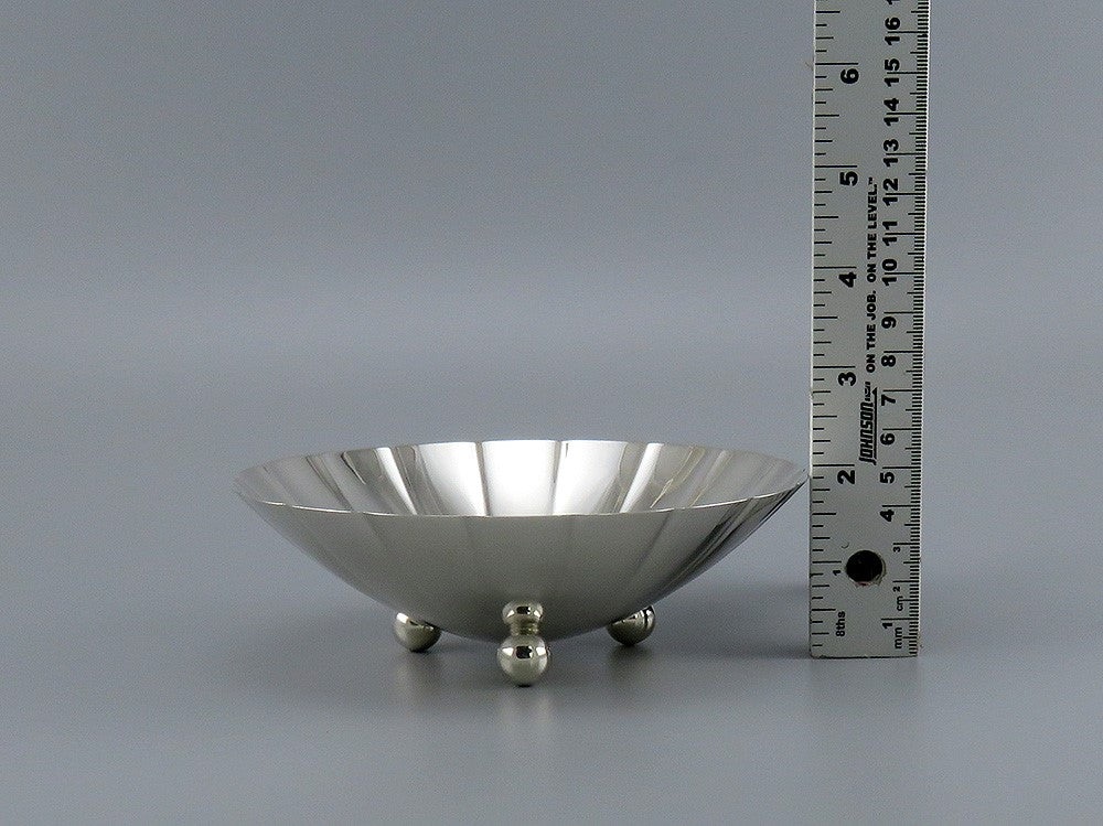Presented is an antique/vintage, sterling silver fruit, nut or candy dish made by Tiffany & Company between 1910 and 1940. The bowl is ruffled or lobed and is raised on 3 ball or bun feet. This piece has never been monogrammed.