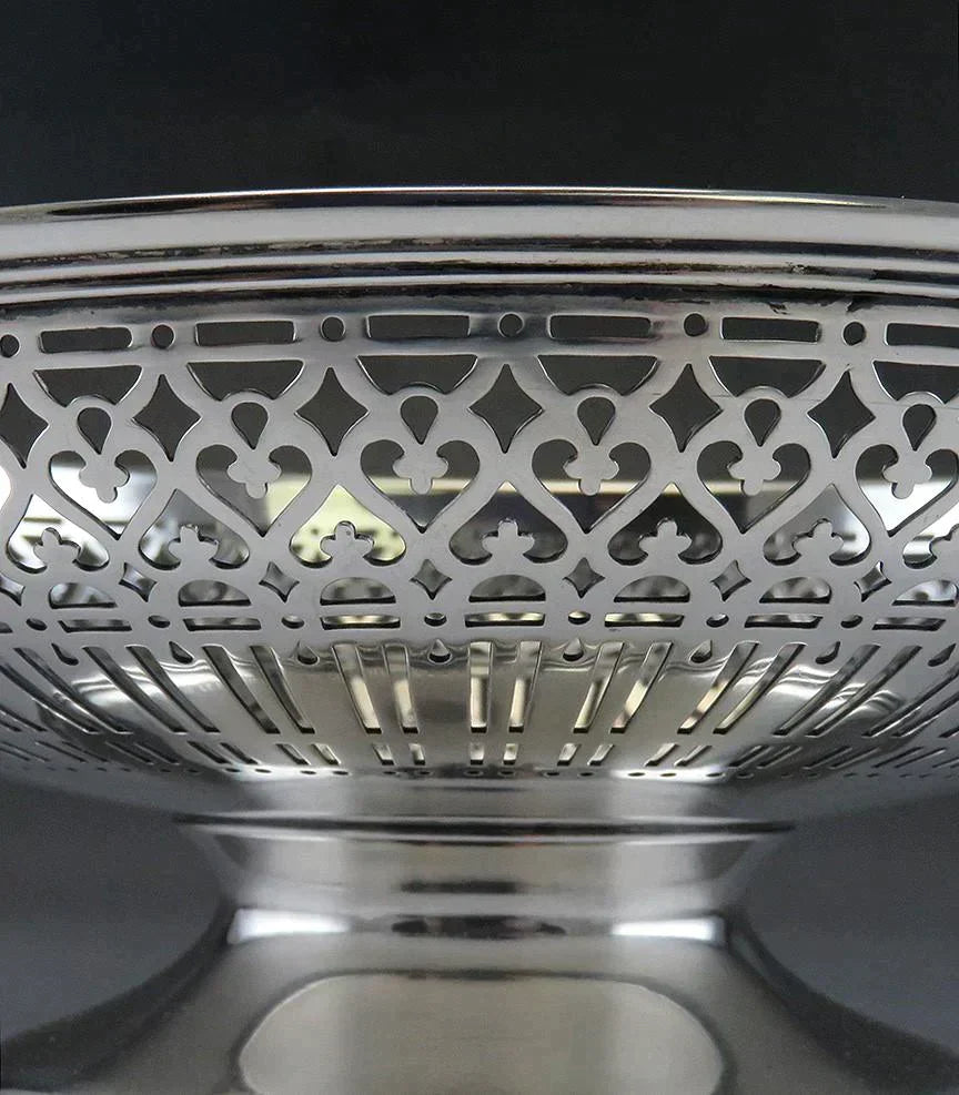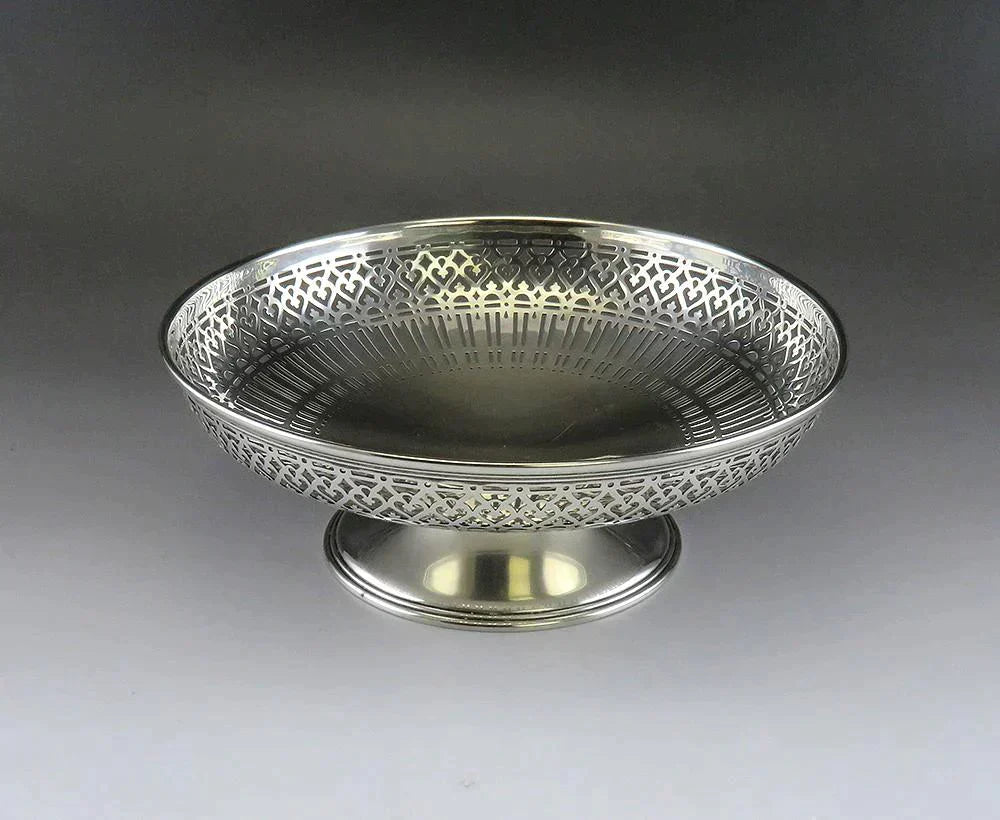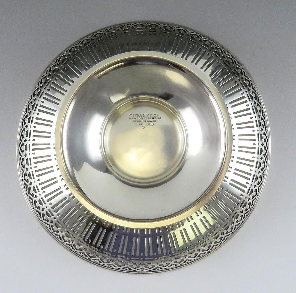 Antique c1920 Tiffany Sterling Silver Pierced Raised Pedestal Dish Bowl Compote