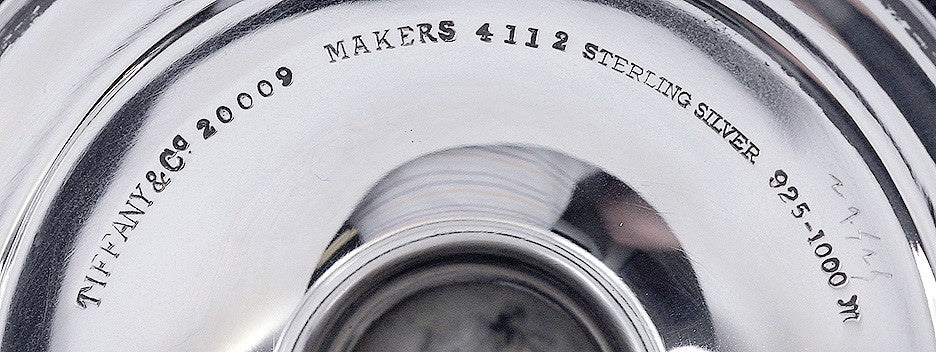 The underside of the piece is stamped with the Tiffany & Co. maker's mark, sterling 925-1000 and the initial 'M' for the company director between 1907-1947, John C. Moore II. There is also a pattern number of 20009, dating this piece to about 1921.