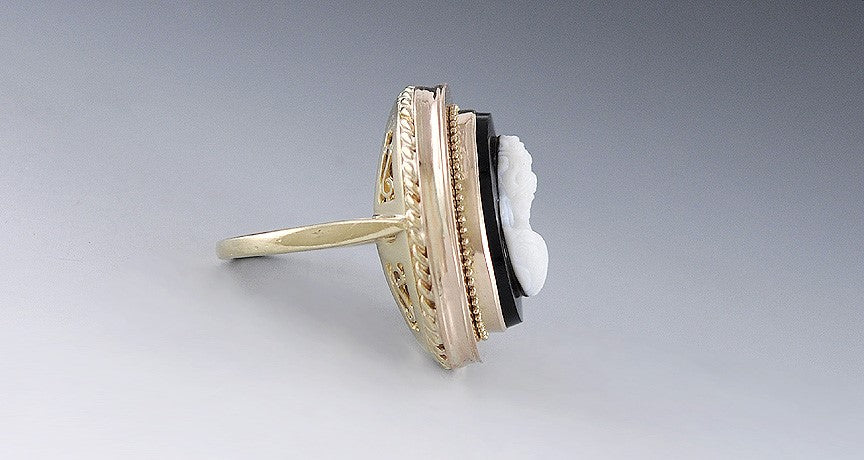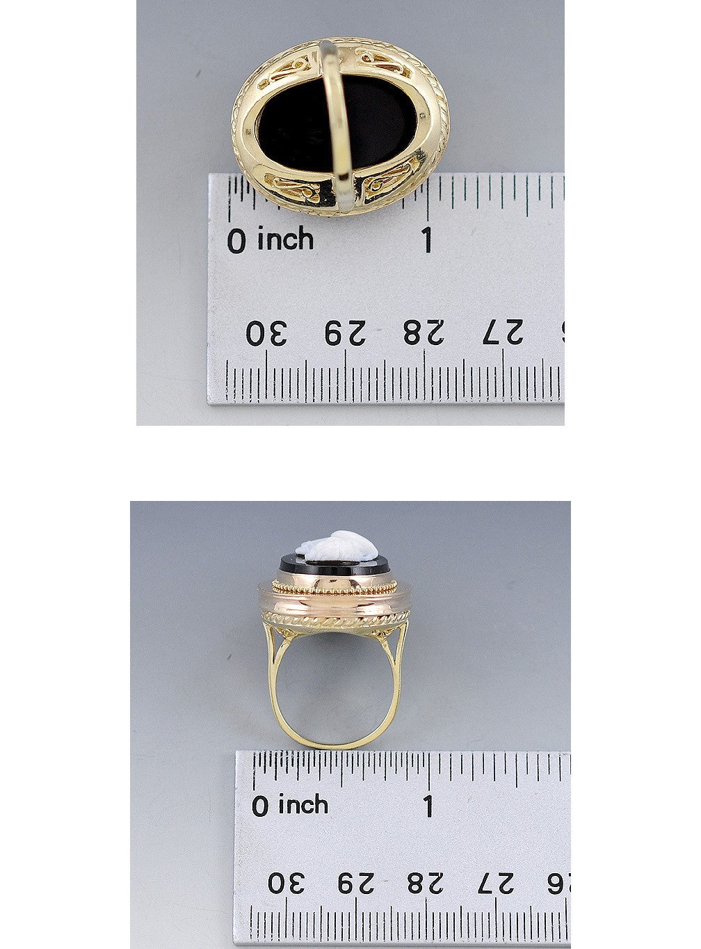 Antique Carved Greek Roman Warrior Sardonyx Cameo 14K Gold Ring