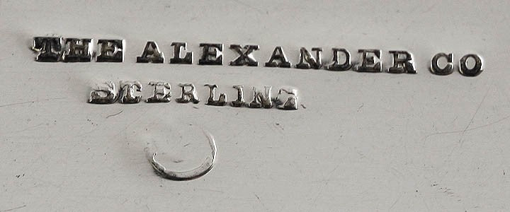 The ice cream slice is marked on the blade with the maker’s mark for Durgin, Sterling, and the Alexander Company for the retailer. The Durgin hallmark is sideways just under the sterling mark.