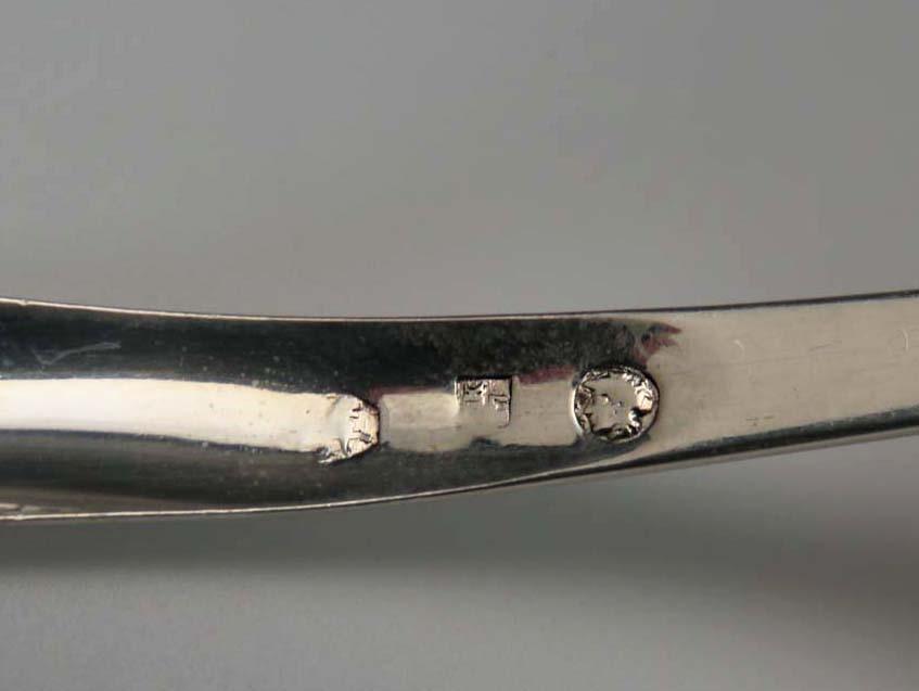 This piece is marked the Dutch assay marks; the date letter “M” corresponding to the year 1846, the Lion Rampant for 833 purity silver and the Minerva Head duty mark.