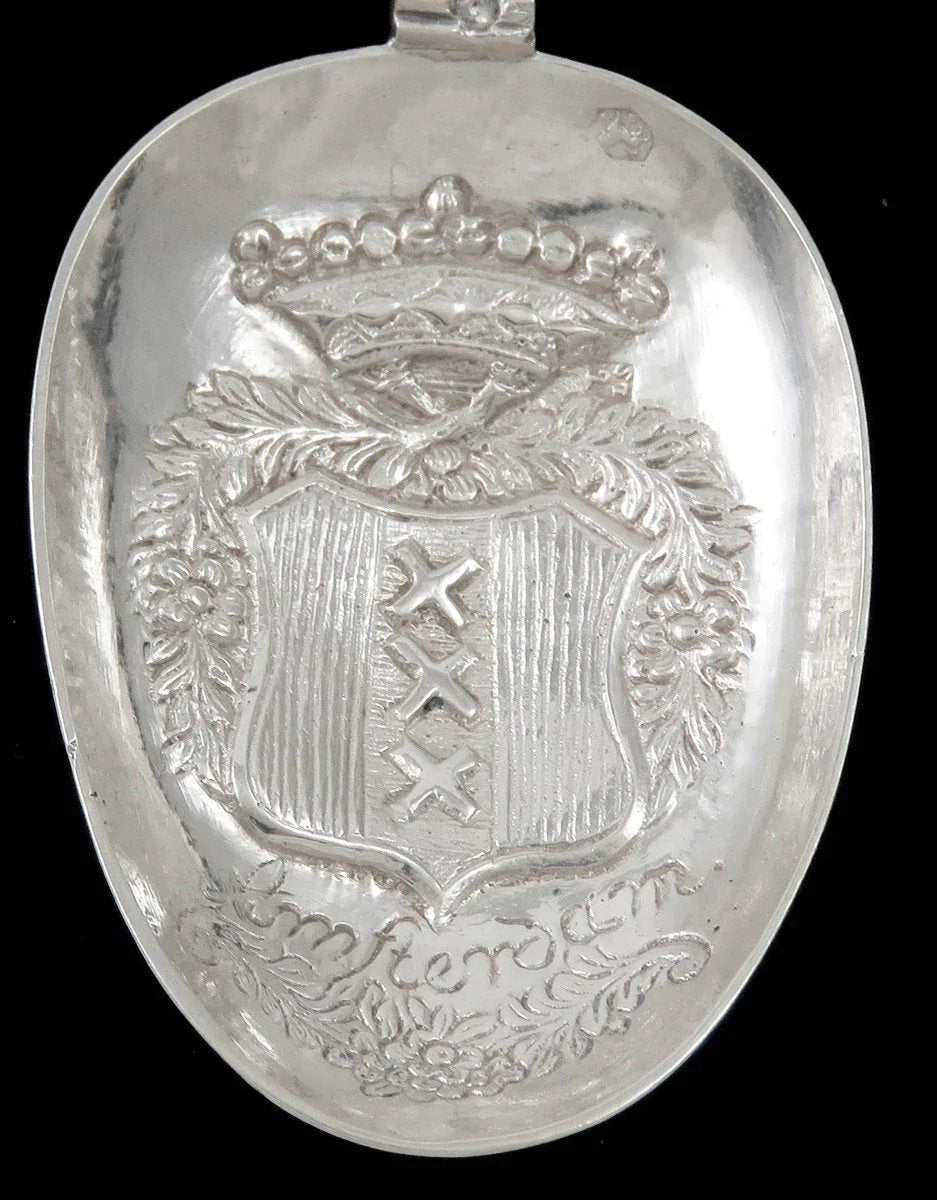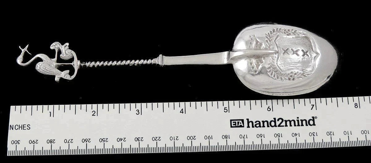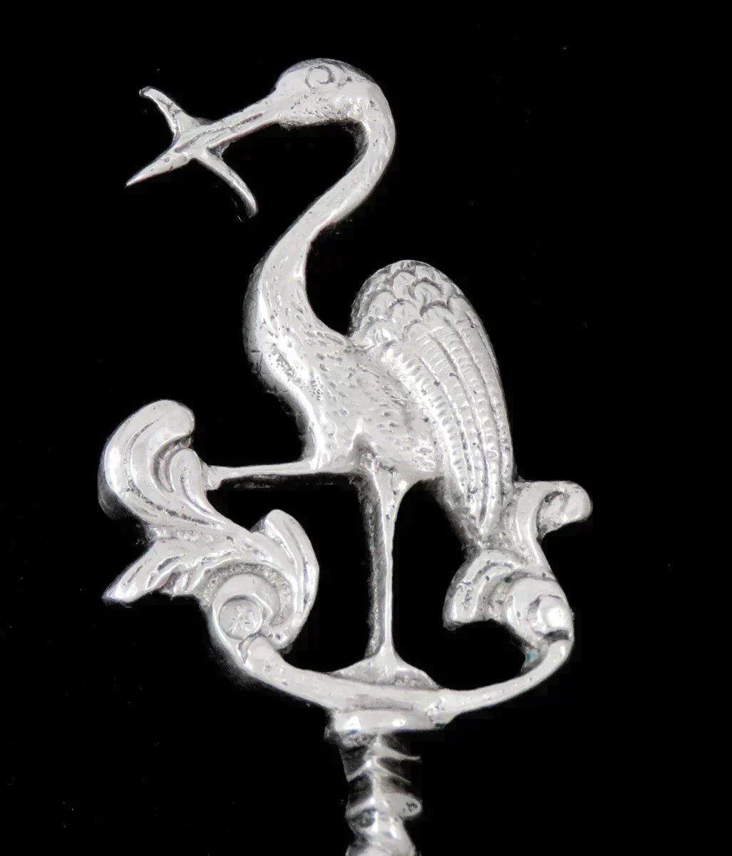 Antique Dutch Silver Egret Heron Stork Amsterdam Crest Souvenir Serving Spoon
