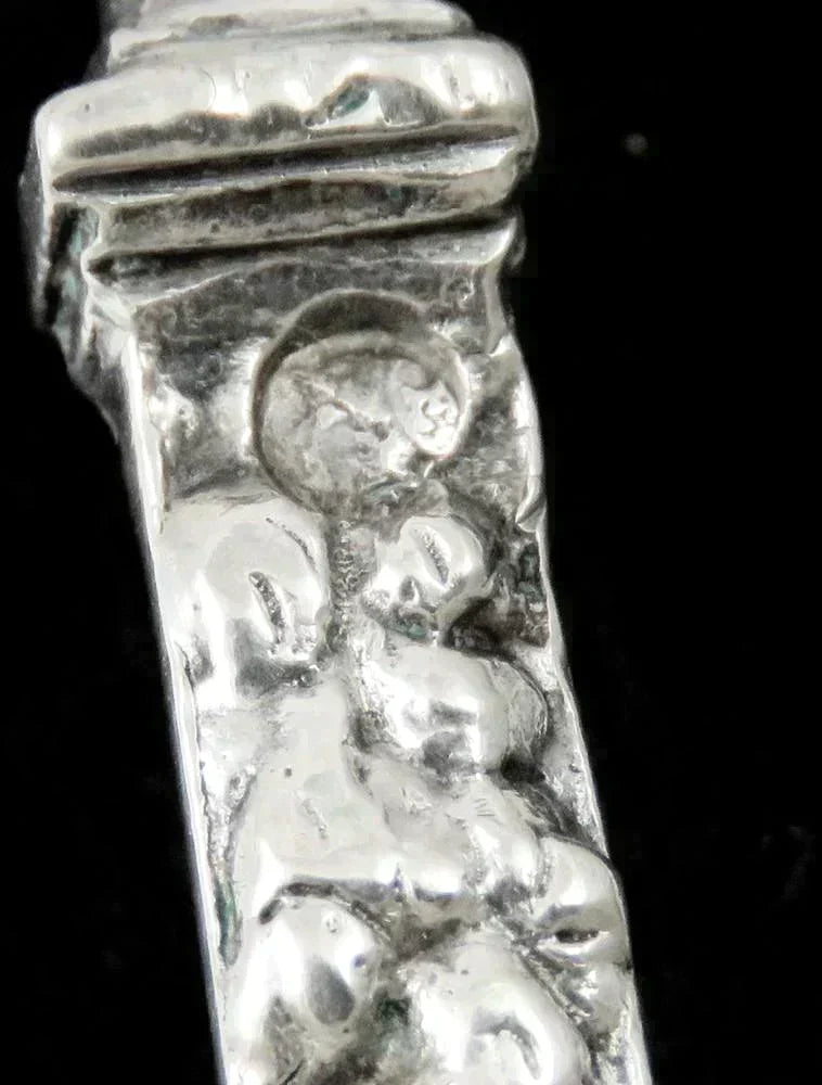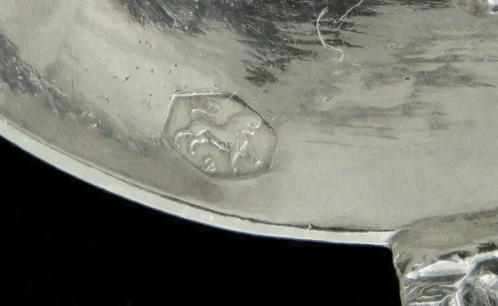 The bowl bears the Dutch lion passant for 833 minimum purity silver. The shaft bears the Minerva head duty mark and a date letter P for the year 1899.